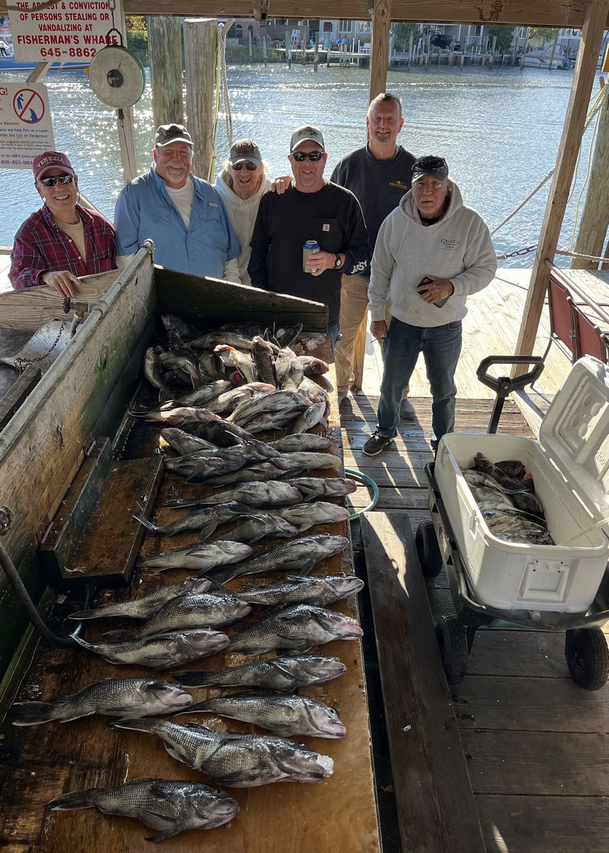 We had some big fun with the sheepshead this month during the seabass closure. The boat record for a half day trip was broken for sheepshead capturing 11 on a half day trip (don’t think we can ever beat the full day record but will see what next year brings). Clients caught a total of 12 citation sheepshead up to 13.25 lbs several of which were released. Sure the numbers would be much higher with nicer weather also.