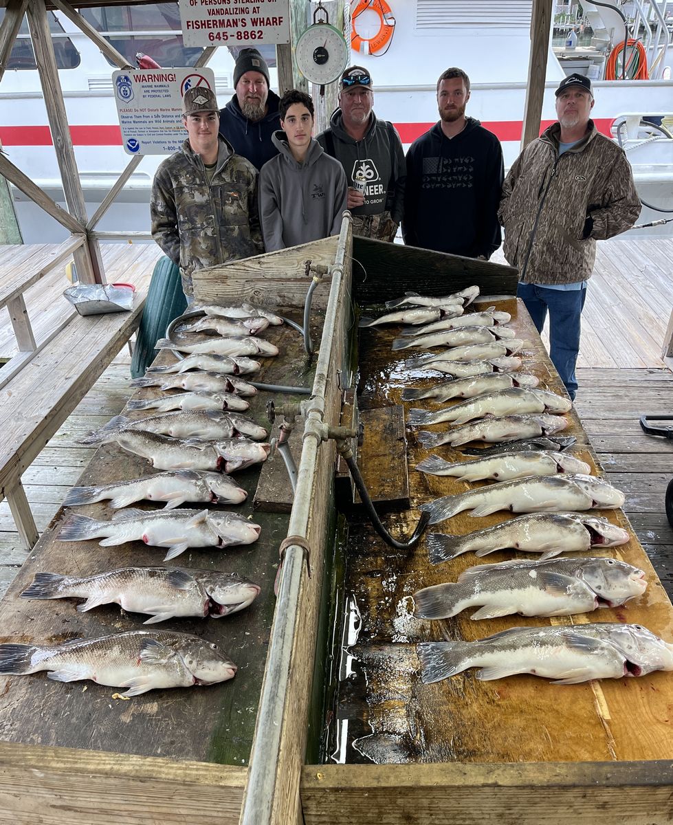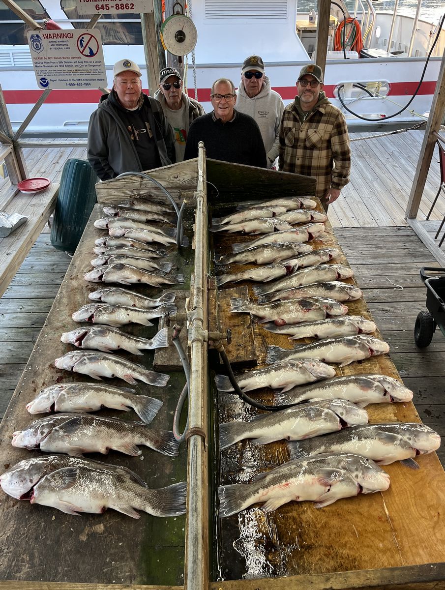 Wow we have lost a lot of days to weather this fall! The days we could get out this month, we saw excellent catches starting with mixed bags of seabass and tog. By mid-month it was nearly all tog and all limits, or very close, on every trip but one. That clunker came following a day we had 5 tog over 12lbs. Stayed put hoping the big ones would turn on again late in the day, but they never woke up that day. Have seen some beautiful tog come over the rail including more than a dozen citation sized tog. Looking forward to some more good tog action through December.